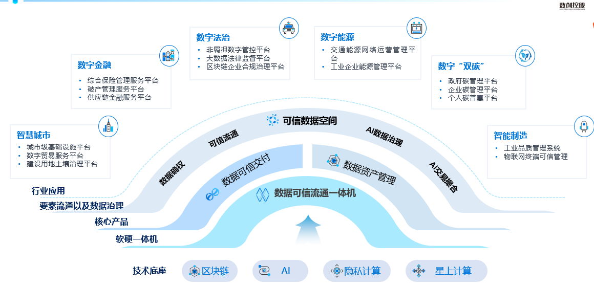 通过隐私计算、联邦学习技术,实现数据不出域的前提下输出并交付计算结果;支持数据交易信息区块链存证,实现交付印证和监管;支持智能扫库和数据分类分级策略配置,实现低成本、自动化的数据资产管理